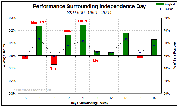 Performance Surrounding Independence Day ($SPX), Ten-Day Bar Chart